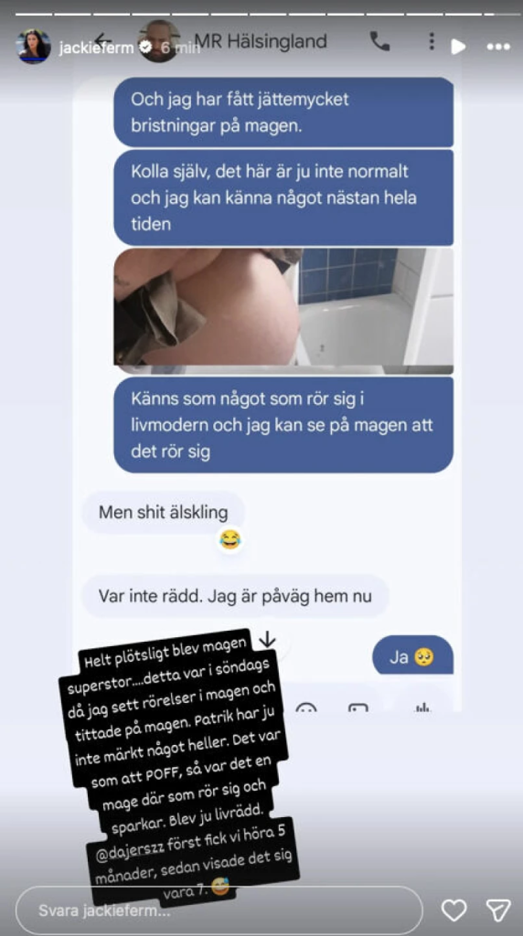 Det är på Instagram som Jackie Ferm berättar att hon och hennes partner, Patrik Lundström, väntar barn – men upptäckten kom som en total chock.