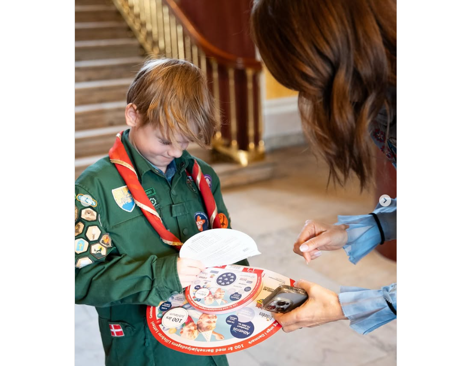 “I forbindelse med 100-årsdagen for Lillebror-lotteriet besøgte Caroline, Oskar og direktør Sofie Hugo fra Børnehjælpsdagen fredag Frederik VIII’s palæ for at sælge årets første lotterikuponer til Hendes Majestæt Dronningen,” skriver det danske kongehus i et opslag på Instagram.