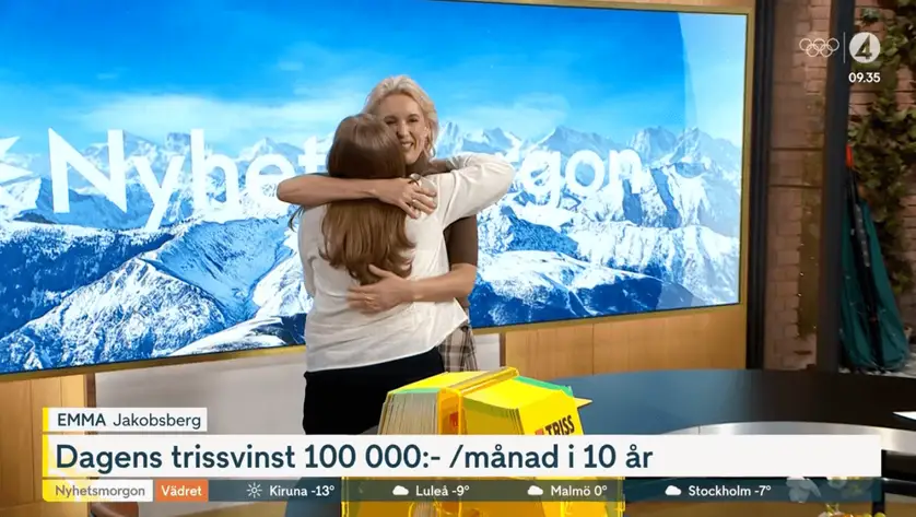 Ja, under lördagsförmiddagen hade det i vanlig ordning blivit dags för det dagliga trisskrapet. I studion välkomnade Jenny Strömstedt gästen Emma, som hade tagit sig från hemmet i Jakobsberg till bordet framför TV4-kamerorna.