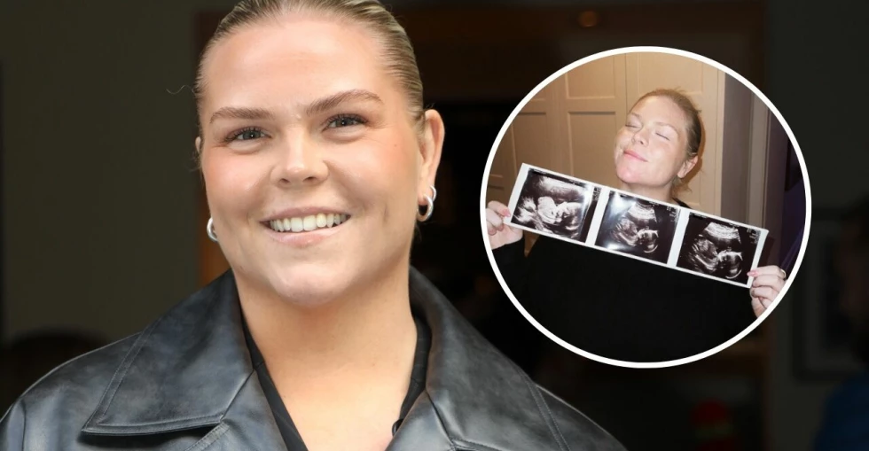 – Jag är gravid. Jag kommer inte säga hur långt gången jag är, men jag är väldigt långt gången. Folk brukar ju berätta efter sådär vecka 12 men det har ju gått väldigt mycket längre än så, berättar hon i det senaste avsnittet av Ursäkta.