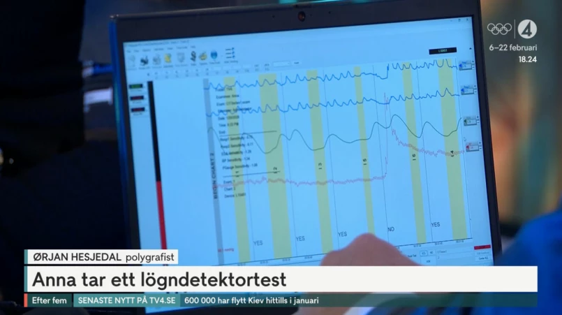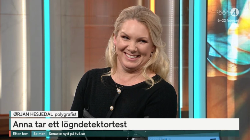 Under tisdagen gästar Ørjan Hesjedal programmet Efter fem. Han jobbar med att testa folk med lögndetektor, och mitt under sändningen var det alltså Annas tur att sätta sig i stolen.