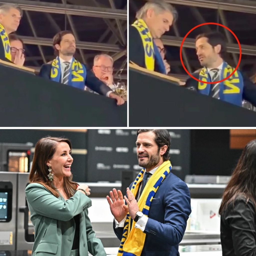 På bilder från en film som Svensk Damtidning fått tillgång till syns prins Carl Philip stå på läktaren tillsammans med flera andra fans, som iklädda blågula halsdukar hejar på de som tävlar.