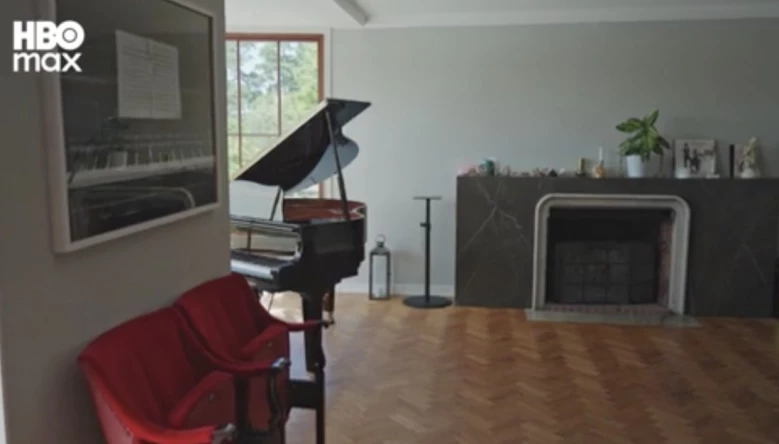 När de kliver in möts de av en stor flygel, en öppen spis och en popcornmaskin. Runt om i hemmet finns tavlor och böcker prydda med namn på stora stjärnor som Fleetwood Mac och Mick Jagger, artister som hennes make Carl har arbetat med.