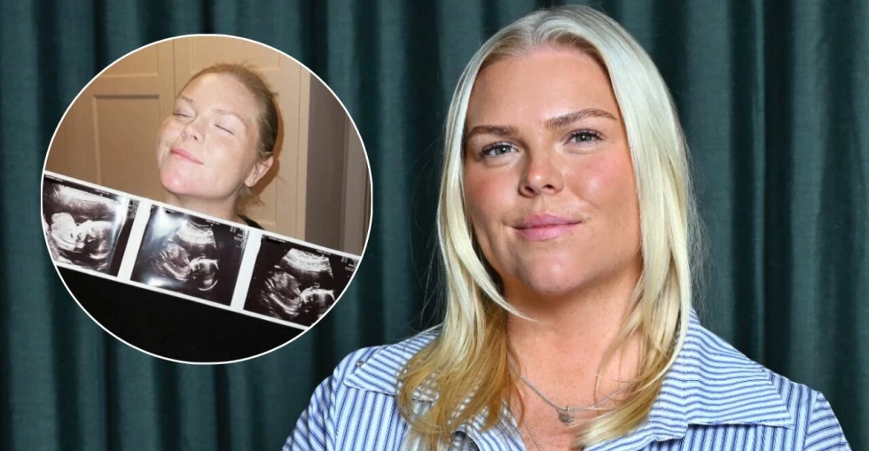 – Jag är gravid. Jag kommer inte säga hur långt gången jag är, men jag är väldigt långt gången. Folk brukar ju berätta efter sådär vecka 12 men det har ju gått väldigt mycket längre än så, berättar hon i det senaste avsnittet av Ursäkta.