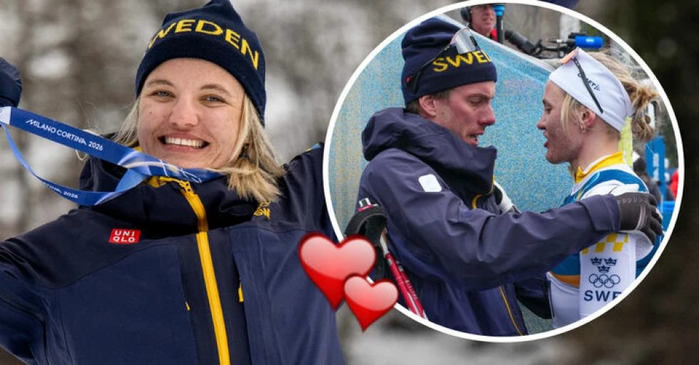 Linn Svahn firade OS-guldet och hon landade tryggt i famnen på Johan Häggström.