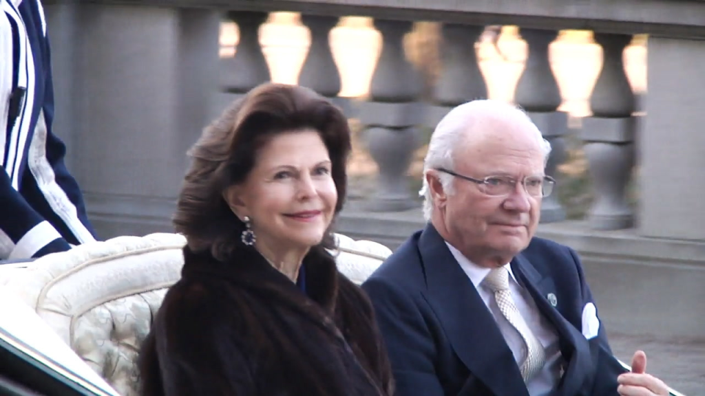 Peter Magnusson kliver in i rummet som kung Carl Gustaf och både Christine Meltzer och Rakel Molin som drottningen Silvia.