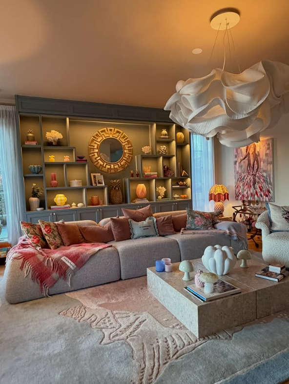 Men nu har den bytts ut mot en lyxig och beige soffa. Den nya möbeln är en födelsedagspresent från Pernillas son Oliver Ingrosso och hans fru Zoey Fay Brown.