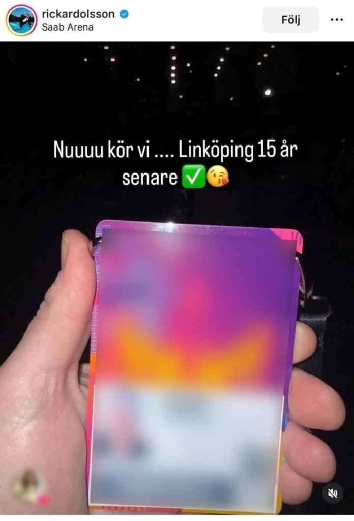 I ett inlägg på Instagram delade han med sig av en bild på sitt backstage-pass, och över bilden skrev han ”Nuuuu kör vi… Linköping 15 år senare.”, följt av en emoji som föreställde en grön låda med en vit bock över och en emoji med pussmun och ett hjärta.